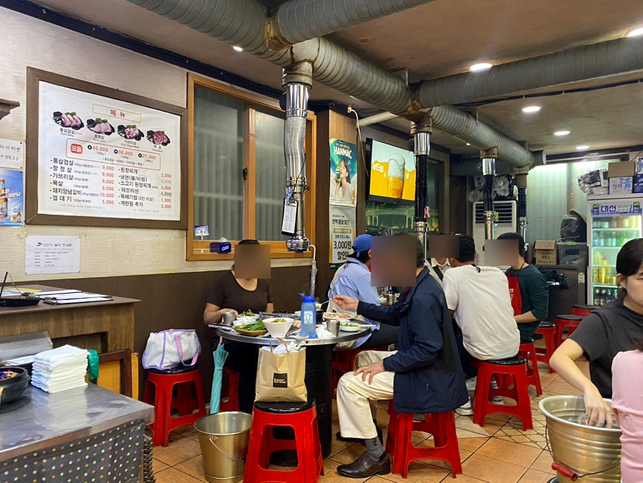 마포통연탄구이는 부산 감천문화마을에서 약 20년 넘게 자리를 지켜온 맛집입니다. 여름에는 노상에서, 겨울에는 실내 홀에서 식사가 이루어지며, 언제나 많은 손님들로 붐빕니다. 화요일 저녁 7시에 방문하였을 때, 홀이 이미 만석이었고 웨이팅이 발생할 정도로 단골 손님들이 많습니다. 이곳을 찾는 손님들의 절반 이상은 단골 고객임을 쉽게 확인할 수 있습니다.